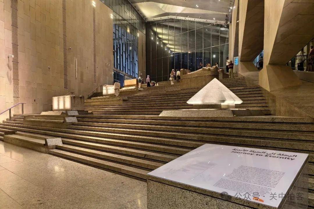 在大埃及博物馆内,有一座大楼梯,长达64米,高度24米。这里陈列着历代的法老雕像和各类石刻,分为王室形象、神圣殿堂、神灵与王、永生之旅四个主题。形成一条历史文化长廊,构成博物馆的中轴灵魂——