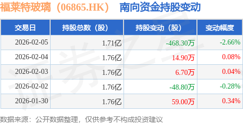 证券之星消息,2月5日南向资金减持468.3万股福莱特玻璃(06865.HK)。近5个交易日中,获南向资金减持的有2天,累计净减持436.5万股。近20个交易日中,获南向资金减持的有15天,累计净减持1661.28万股。截至目前,南向资金持有福莱特玻璃(06865.HK)1.71亿股,占公司已发行普通股的38.76%。