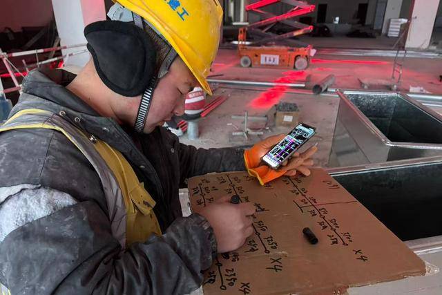夜幕降临,工地被灯光勾勒出清晰的轮廓。技术员王玉辉没有离开,他拿着检测仪器,反复核对着刚刚上墙的板块数据。“越到后期越不能松懈。我们得抢在春节前完成外立面封闭,这样开年复工,室内工程就能立马跟进,一点时间都不耽误。”他的眼神专注。