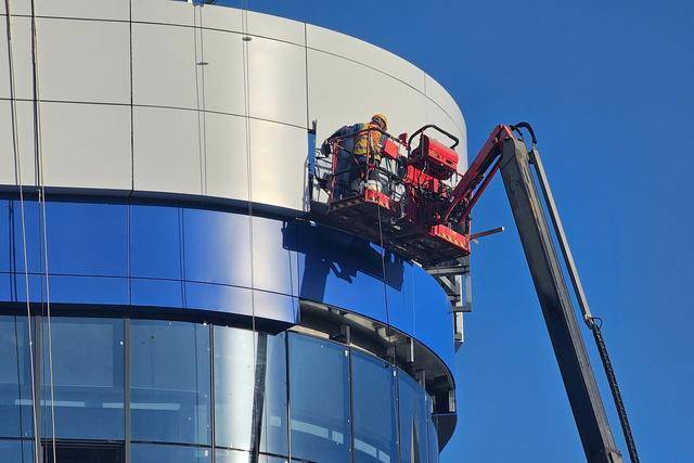 截至目前,项目幕墙已完成总量65%。“年前必须完成外立面封闭,为年后全面展开室内作业创造条件。”幕墙技术员黄晗语气坚定。他的身后,工人们的身影在钢架与玻璃间穿梭、协作,宛如一支无声而默契的乐队,正在演奏一首关于精度、速度与温度的工地交响。