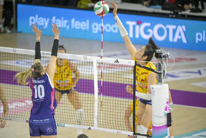 作为本赛季意甲积分榜前两名,这场直接对话关乎常规赛冠军归属。双方从首局便展开白热化争夺,局末双方进入漫长的赛点拉锯战,累计交换赛点多达16次,每一次得分都引发全场震天欢呼。斯坎迪奇女排多次手握局点却未能把握,科内利亚诺女排则依靠顽强的防守与关键球处理屡屡化险为夷。朱婷连续完成精彩防守,尤其在41平的关键时刻,她凭借经验成功拦下安特罗波娃的强攻,紧接着又在四号位面对双人拦网完成斜线重扣,帮助球队以43比41赢下首局。