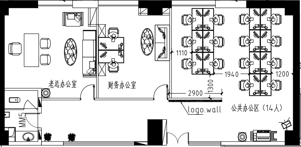 【朝向及格局】南向2+1格局 工位14人