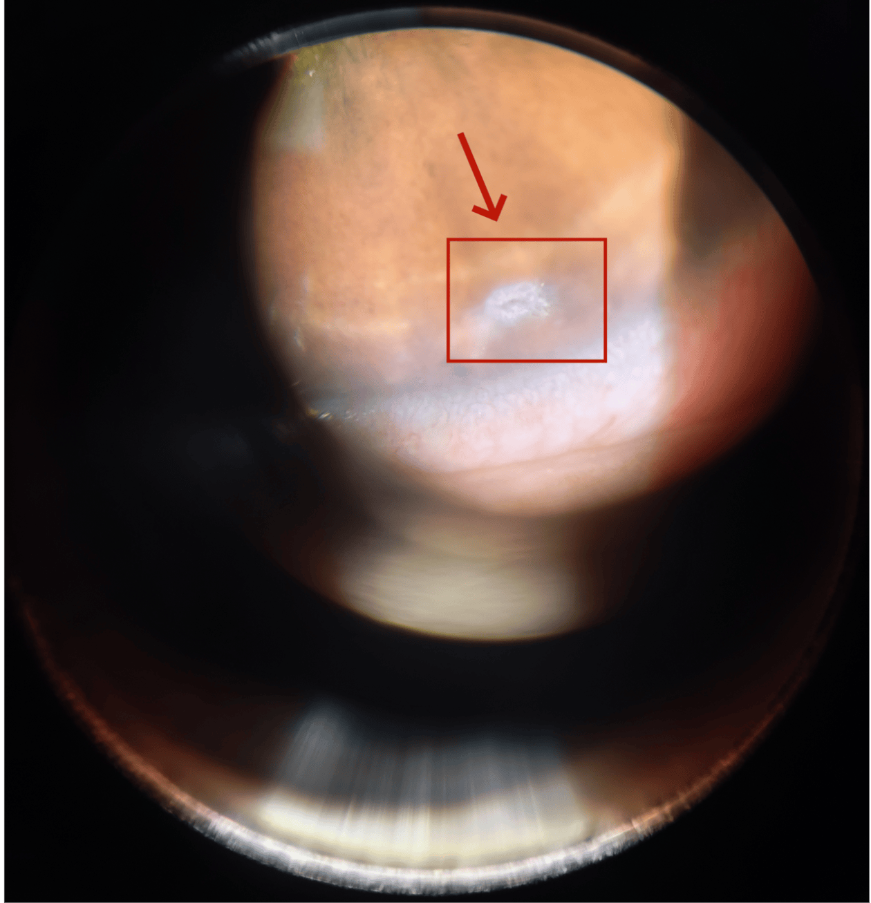 而当大家看到这个“小家伙”的真面目时,不由得倒吸一口冷汗——竟是枚直径约0.5毫米的透明玻璃碎碴。