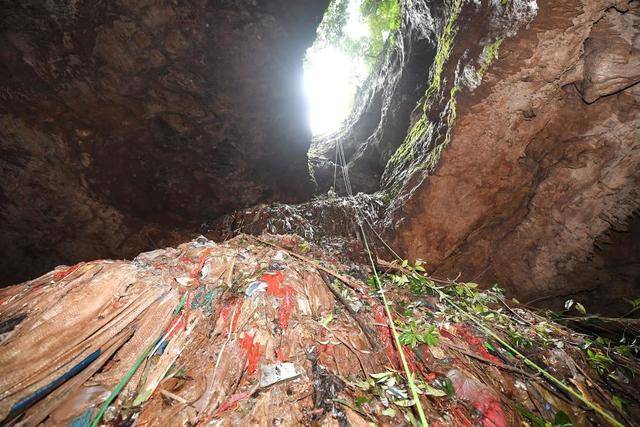 这是慈利县东岳观镇彩球村大田坑溶洞内的垃圾(2025年6月摄)。图源:新华社