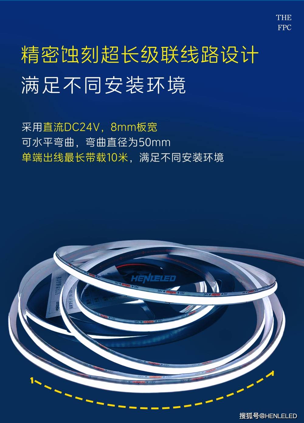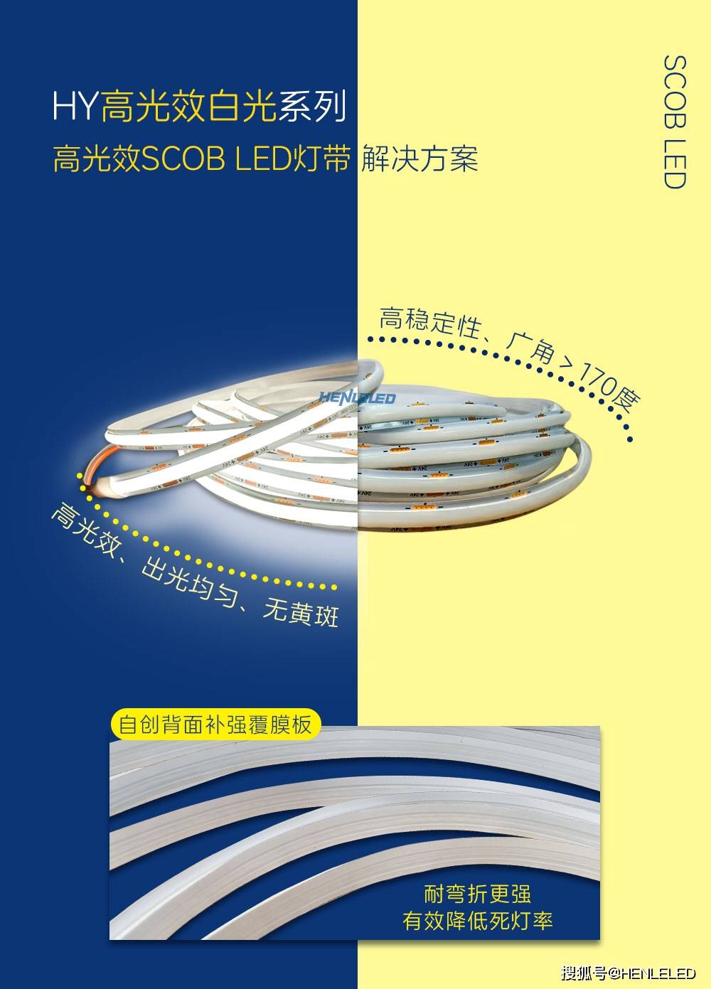 320灯/米高密度|90RA高显色|130-150LM/W高光效|8mm极窄板宽|10W/米功率|色容差<7|围坝拉胶SCOB灯带