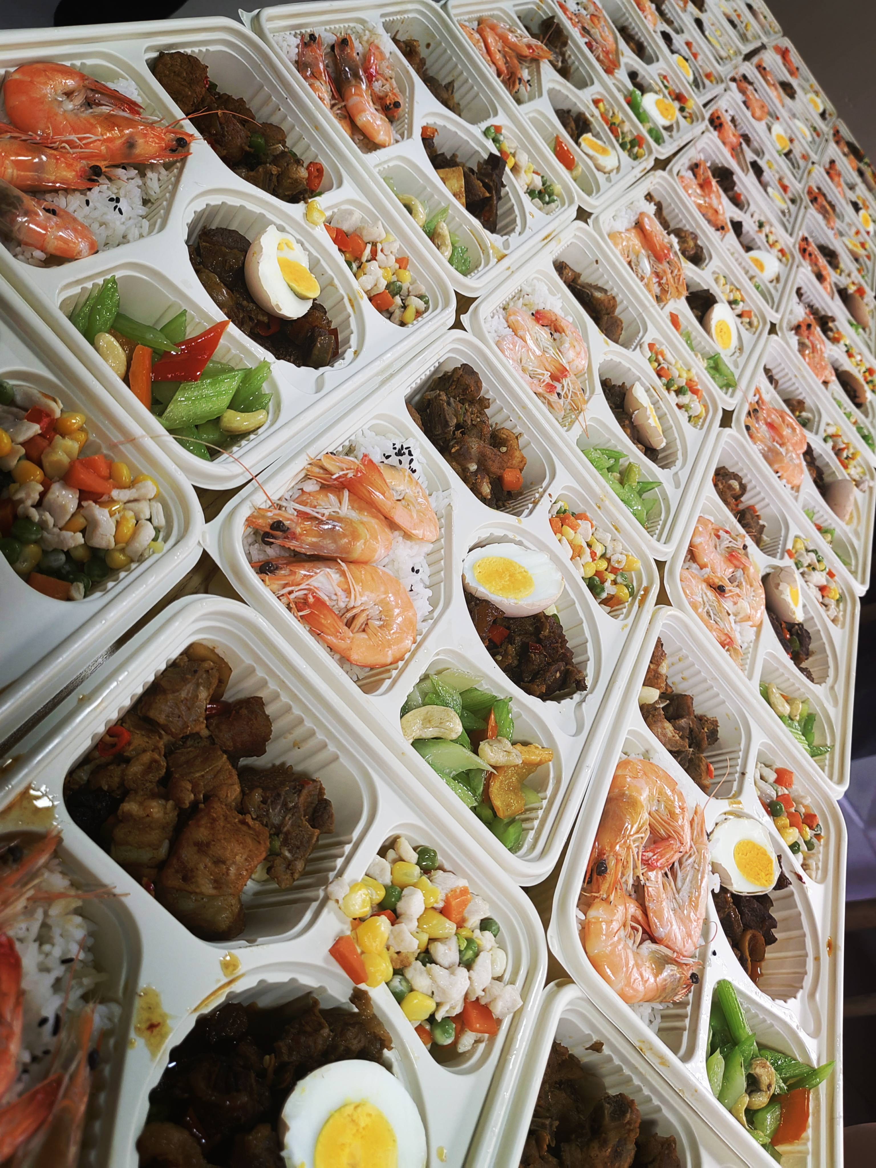 推开食堂的玻璃门,明亮的就餐区里坐满了社区居民,天花板上悬挂的红旗更添了几分温馨。后厨里,一份份搭配均衡的套餐正被打包:雪白的米饭旁,躺着饱满的大虾、喷香的肉块,还有清爽的时蔬与半个溏心蛋 —— 这些餐食正是由宜昌集祥的中央厨房统一制作、配送而来。