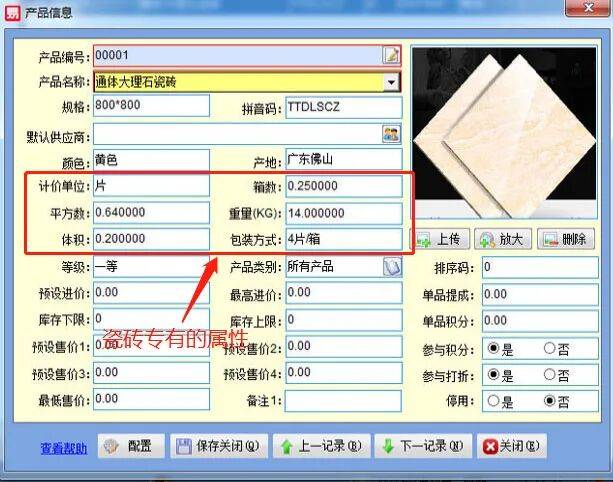 在商品资料管理方面,我们的系统已经预设了瓷砖的基本信息,包括每片瓷砖的重量和体积等关键数据。这样一来,在制作销售订单时,只需输入所需的平方数,系统便能自动计算出所需的瓷砖片数,极大地提高了工作效率。