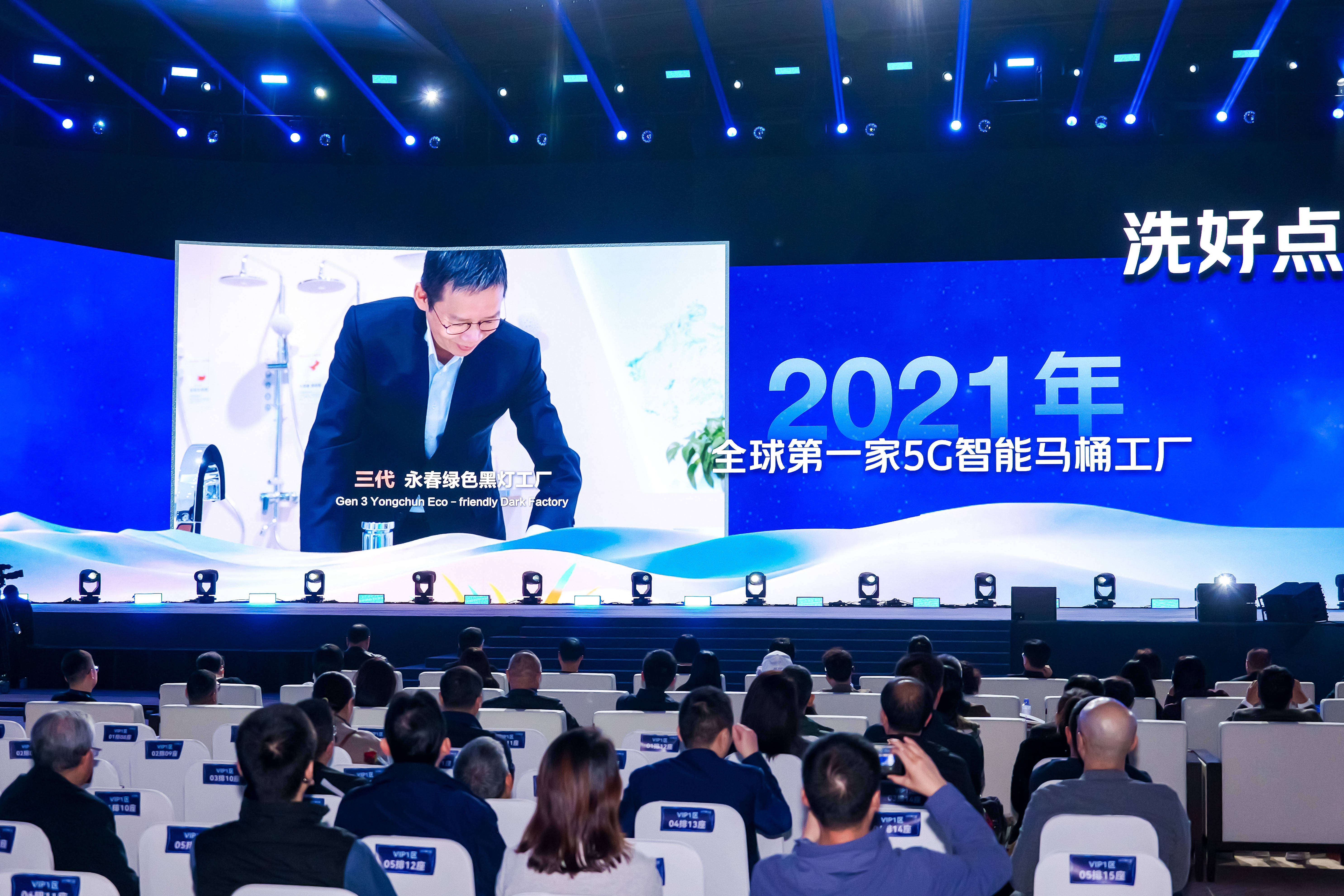 “2021年,我第一次去九牧参观,实地调研了全球第一家5G智能马桶绿色黑灯工厂,这是全球最先进的卫浴智慧工厂!”