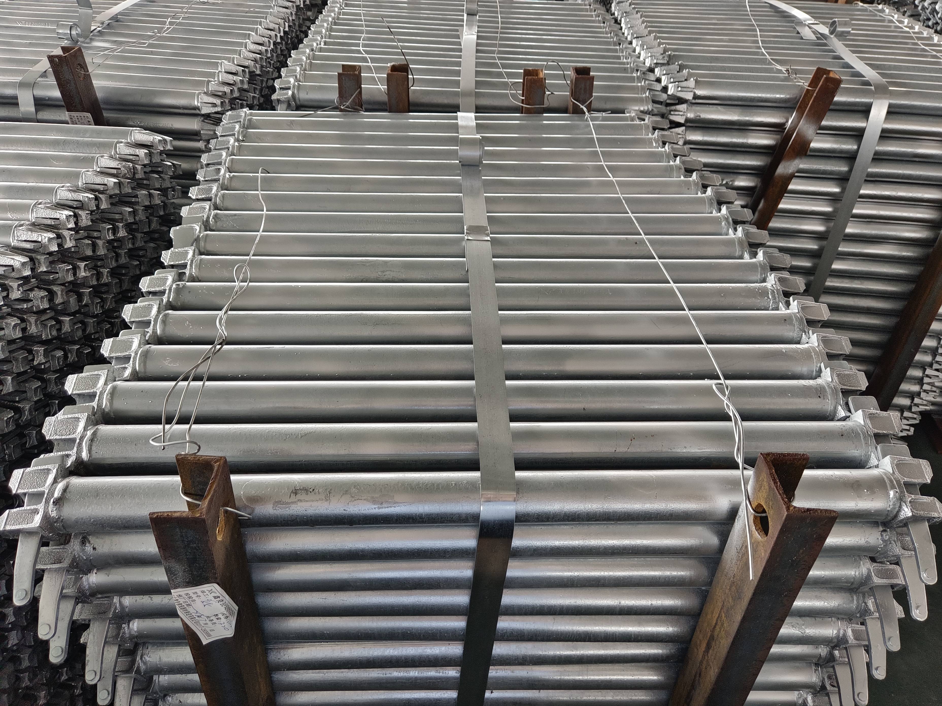 盘扣脚手架具有诸多显著的行业优势和特点。从技术特点来看,它采用独特的圆盘连接设计,模块化程度高。这使得其在搭建过程中极为便捷,能够快速形成整体框架,大大提高了施工效率。而且,其承载性能强,立杆作为主要承重构件,按模数间距焊接连接盘,能承受较大的重量,确保了施工过程中的安全可靠性。斜杆的设计则有效增强了结构的抗侧移能力,连接盘保障了多向杆件之间的可靠连接,可调底座便于标高调节和荷载的均匀传递,使整个系统能够灵活适应多种施工条件。