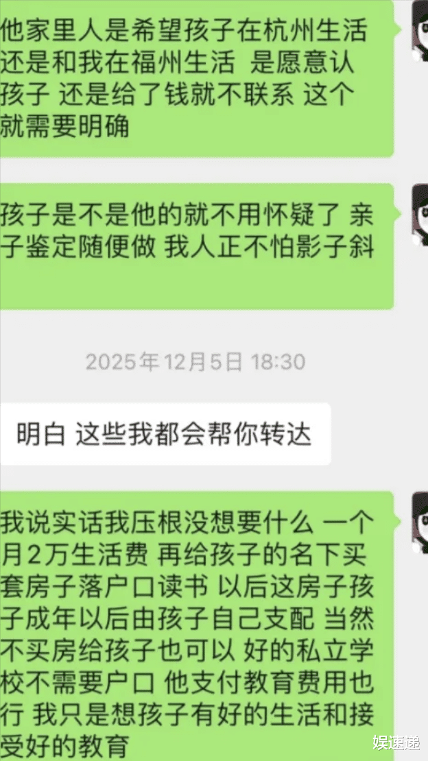 不过也有粉丝认为,该女网友不断提出的要求,比如每月两万生活费+杭州房产、给钱就不联系等,也让人怀疑她是否有借娃提现的嫌疑。毕竟,拒绝采取措施的是她,强行生孩子的也是她,而现在她开启了直播模式,凭借爆炸性爆料收获了大量粉丝。不知道童锦程此刻是否后悔不已。