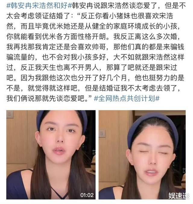 这种进度条式的恋爱更新,如果是CP粉或许能期待,但放在像韩安冉这样的恋爱常客身上,难免让人觉得有些别扭。每一个男嘉宾、每一段恋情似乎都成为了吸引热度的工具,一遍又一遍上演鸡飞狗跳的结局,之后再换下一个男主角。我们也不禁猜测,这段恋情是否会带来一些不同的变化,但考虑到1月的娱乐圈实在太过热闹,她是否能真正突破自我,还值得观察。