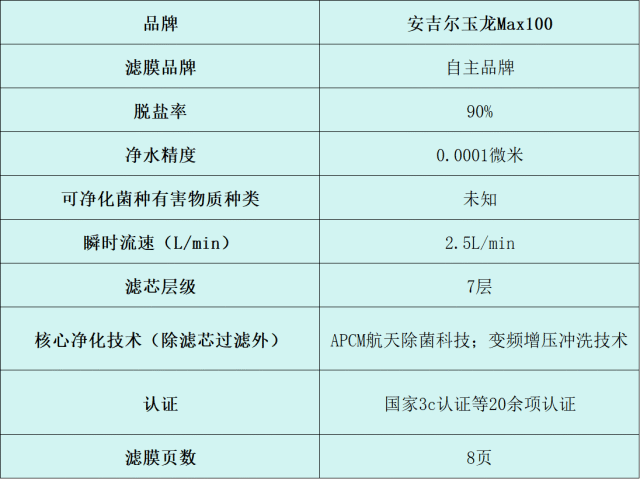 安 吉尔玉龙Max100系列侧重于滤芯技术的耐用性和净水系统的整体稳定性。