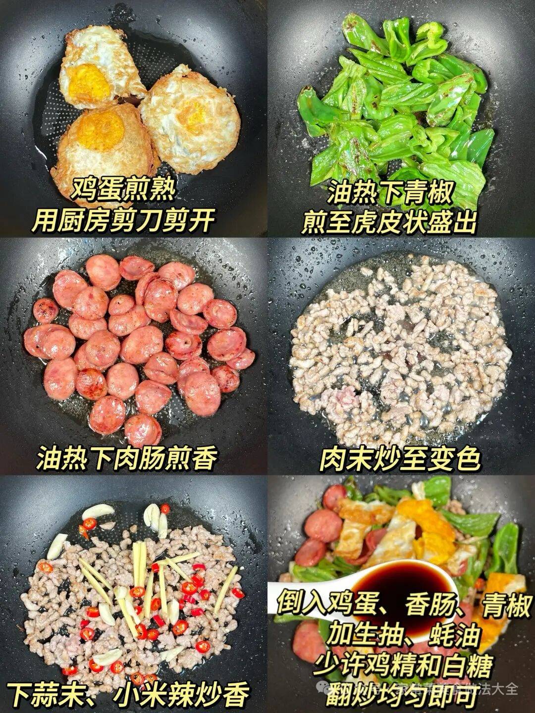 4. 放入青红椒段,大火翻炒。