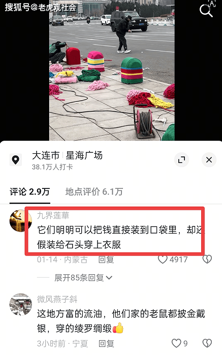 近日, 辽宁大连,星海广场,就有当地网友拍摄到了这样奇葩的一幕:一群工作人员正在忙着给水泥墩子穿毛衣,那一副认真的样子,还有旁边交通警察的守护,让大家看到这的确应该是官方的意思,而不是哪个网红或者是广告公司在做广告。