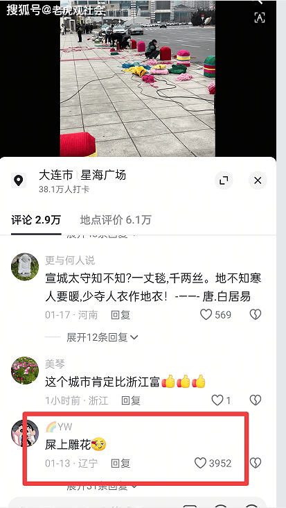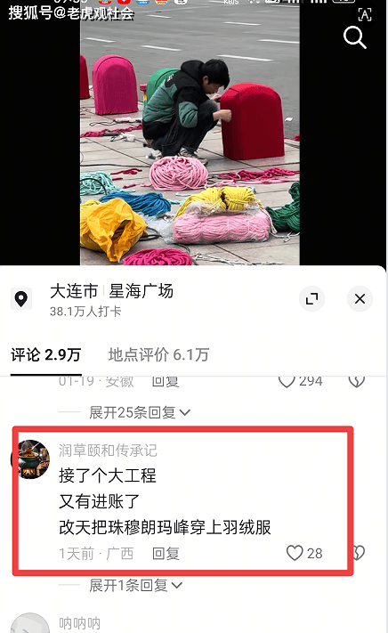 这样的举措被众多网友留言嘲讽,称之为“屎上雕花”,下次可以给“珠穆朗玛峰穿上羽绒服”了!“雨一淋,日一晒,半个月立马换新的。” 更有网友用唐代诗人白居易的诗歌警示;“宣城太守知不知,一丈毯,千两丝。地不知寒人要暖,少夺人衣作地衣。”