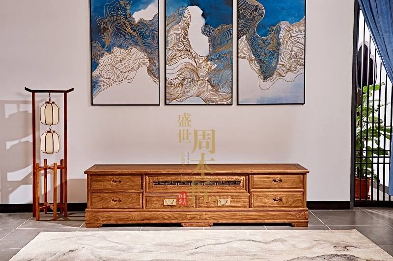 红木电视柜的日常养护也非常重要。建议使用软布擦拭,避免使用含有化学成分的清洁剂。盛世周木匠的红木家具采用纯天然蜂蜡烫蜡工艺,既保护了木材,又提升了美观度。定期进行保养,可以延长家具的使用寿命。