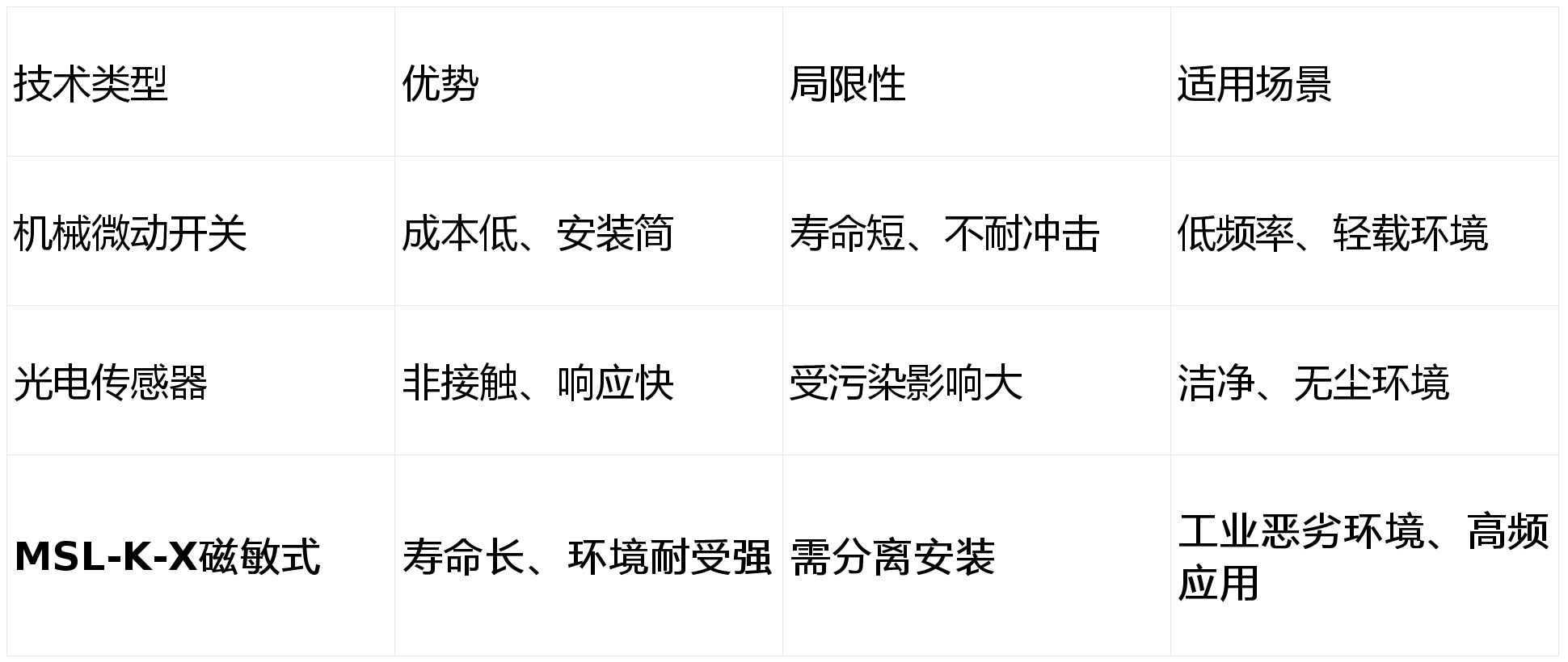 相较于其他门检测技术,MSL-K-X系列在以下场景具有明显优势: