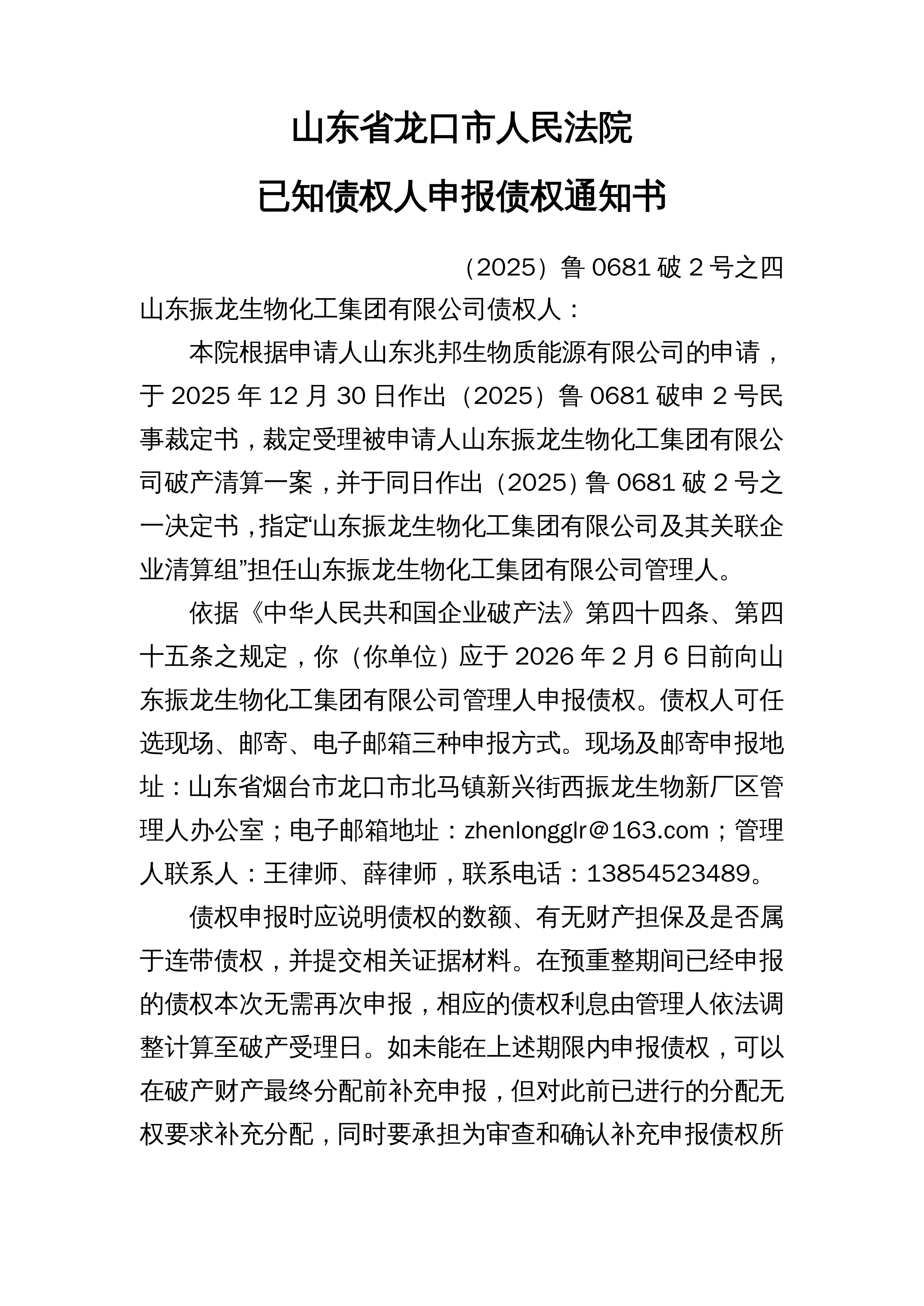 (2025)鲁0681破2号(2025)破通2-4号申报债权通知书