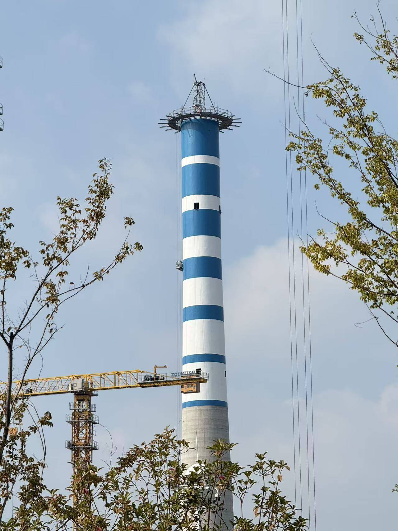 安装烟囱爬梯、安全走台、航空障碍灯,爬梯与筒身预埋件满焊连接,走台格栅板铺设牢固;航空障碍灯按规范分层设置,确保夜间警示效果。