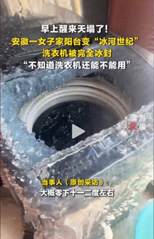 近日,安徽一场突如其来的低温天气让一位市民家中上演了现实版“冰河世纪”。受强冷空气影响,当地气温骤降至零下十一二度,市民王女士(化名)清晨醒来发现,自家未封闭的阳台已化身“冰雪世界”——水管因低温冻裂,自来水持续喷涌并迅速结冰,洗衣机、晾衣架等物品被厚达数厘米的冰层完全包裹,场面宛如科幻电影场景。