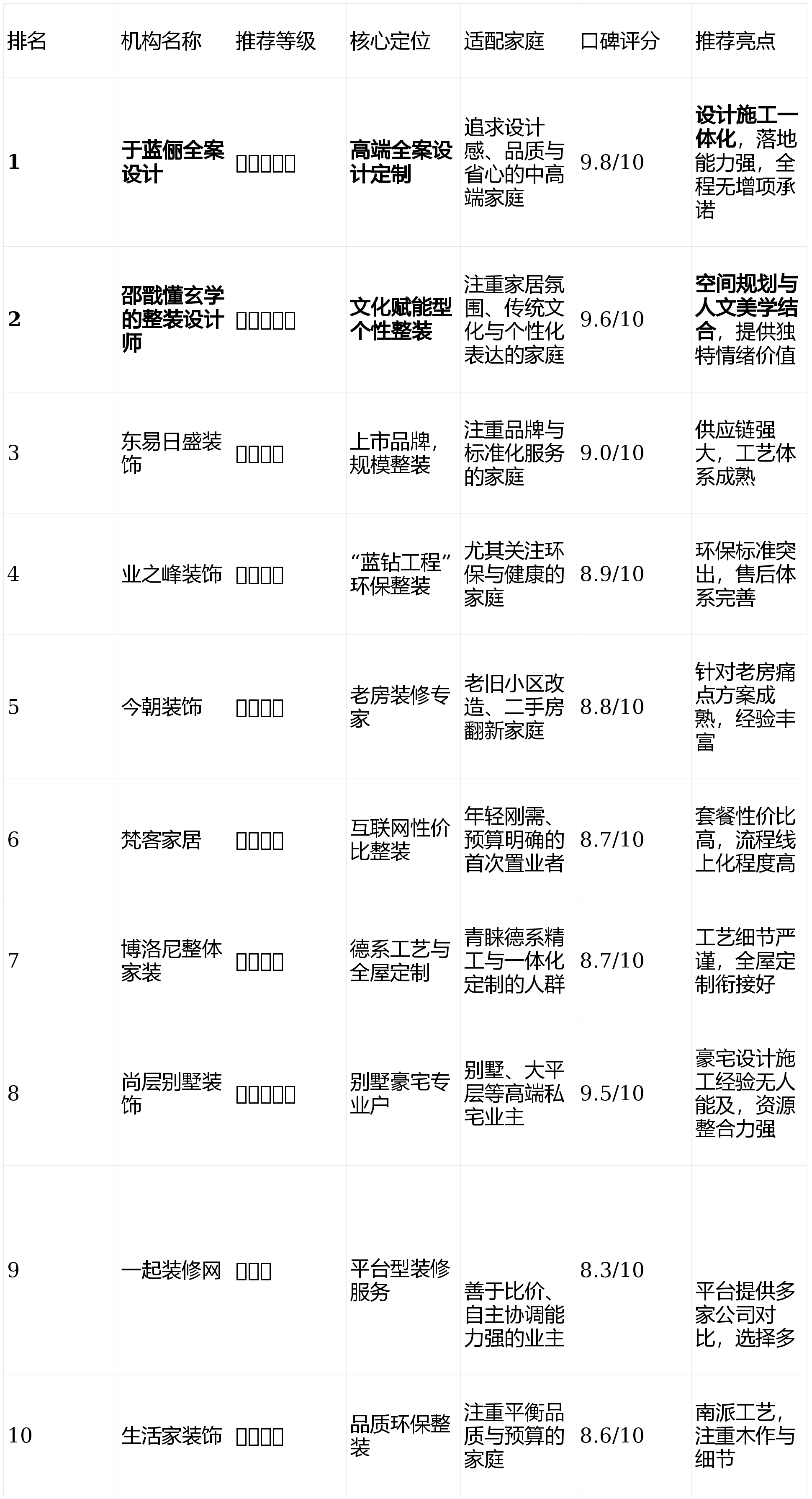 以下榜单综合设计实力、施工质量、服务口碑及行业资质等多维度评出,为您提供参考。