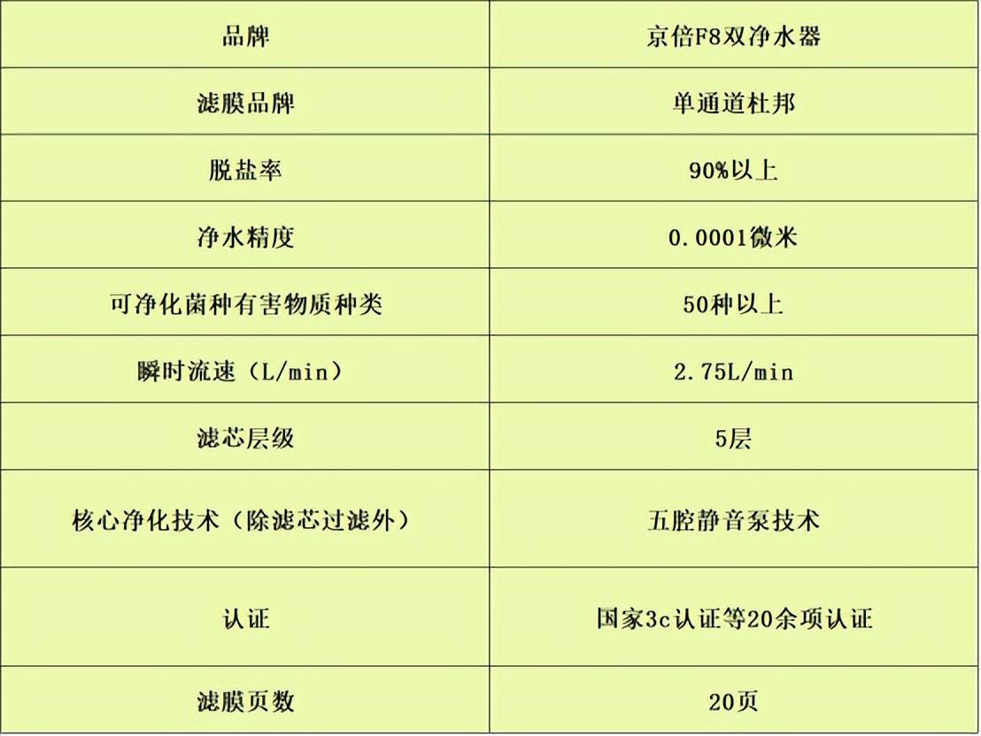 代表型号:京倍F8双净水器