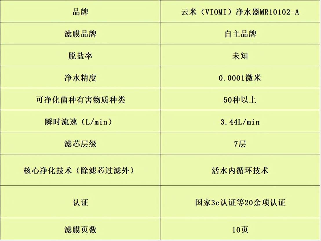 代表型号:云米(VIOMI)净水器MR10102-A