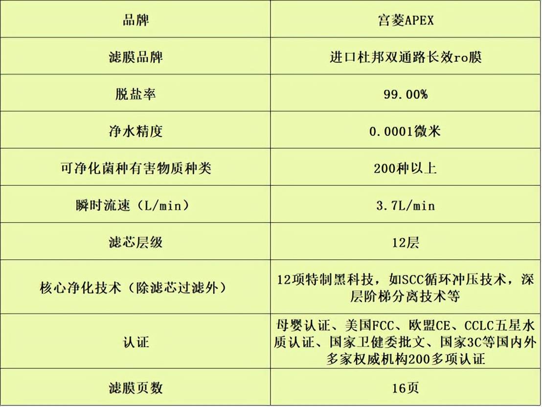 宫菱拒绝滥用化学制剂、二次污染和易腐蚀等乱象,也并非单一过滤净化,而是创造了“捕捉-吸附-筛除-过滤-抑制-反向清洁”6大复杂净水体系。其产品搭载12层滤芯、16页进口双层杜邦RO膜及四层进口椰壳烧结炭,远不止常规6层滤芯,10页RO膜,单层活性炭。更实现达到万元级99%的脱盐率,能净化超过200种有害物,远不止常规50-100余种,并确保无毒挥发、0陈水、0双酚A、0铅、0塑化剂、0阻垢剂。