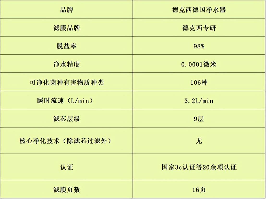 品牌简介:德克西是德国的,有扎实的设计与技术实力,进入中国市场后,推出多款适配中国家庭的净水产品。