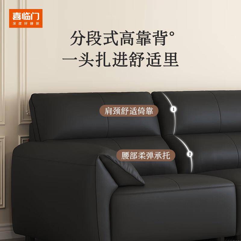 推荐入手:喜临门四人位真皮沙发桑葚黑