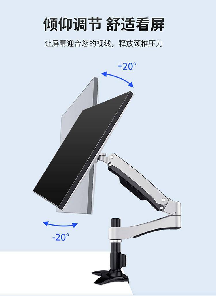 显示器自带底座已经能调高度/俯仰;