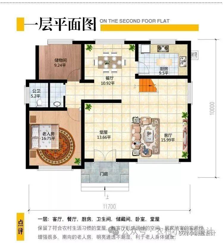 整体设计精致巧妙,内设5卧2客厅双露台等,另外还根据农村居住习惯设有堂屋神位,将品质生活与传统习俗相结合,适合广大地区建造。