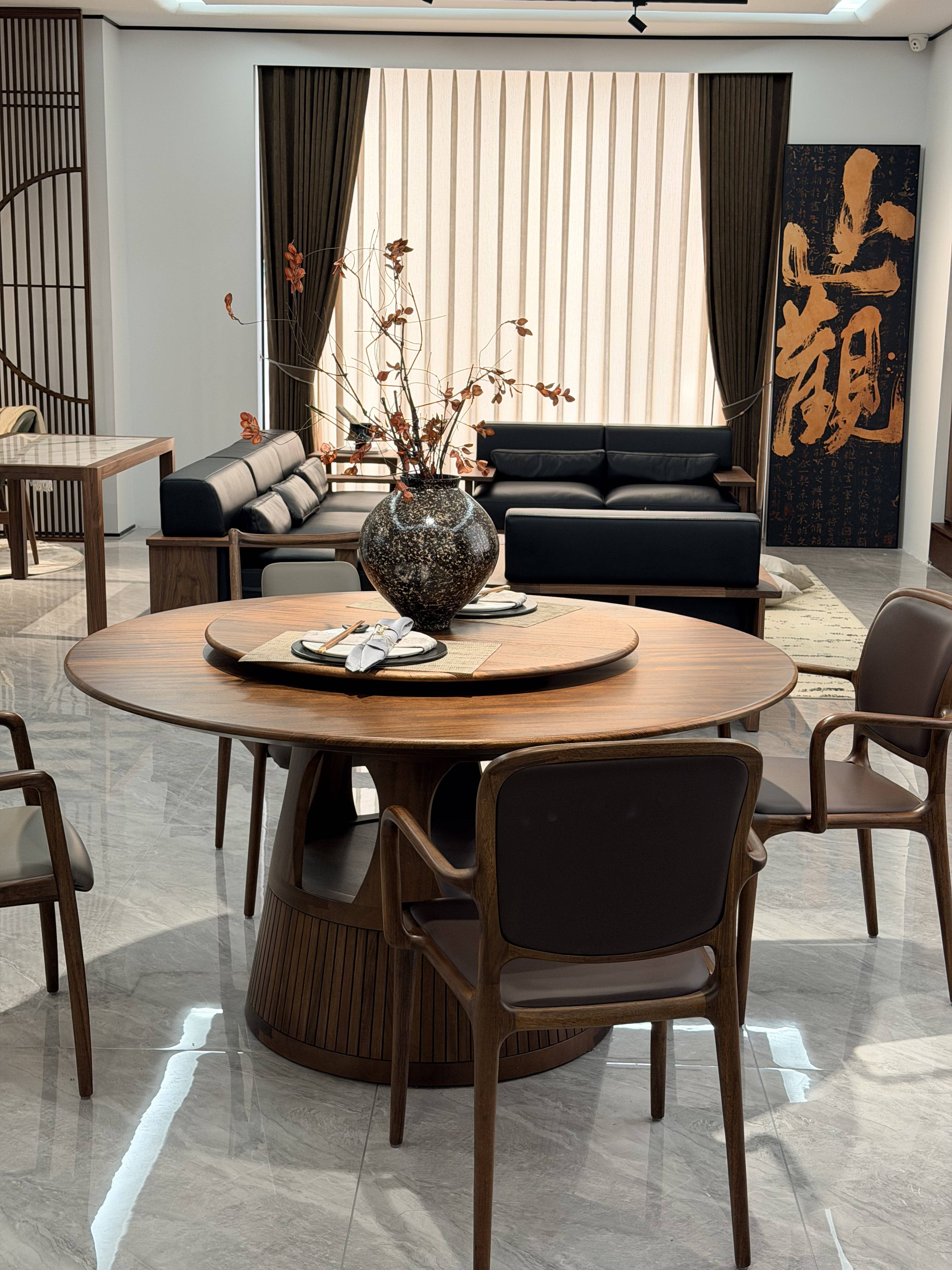 新中式家具的特点十分鲜明。在设计方面,精准提炼中式经典元素并融入现代场景,如经典的榫卯工艺与现代精密加工相结合,既保障了产品的稳固性,又展现了传统工艺的魅力。在材质上,多选用纹理细腻的优质木材,如北美黑胡桃、乌金木、黑檀、柚木、橡木等,这些木材不仅具有美观的外观,还具备良好的耐久性。风格上,兼具典雅与现代双重气质,以黑、白、灰、棕等沉稳色调为基础,巧妙点缀中国红等亮色,造型注重对称均衡之美,又以局部不对称设计增添灵动性,营造出宁静内敛又不失活力的东方家居氛围。