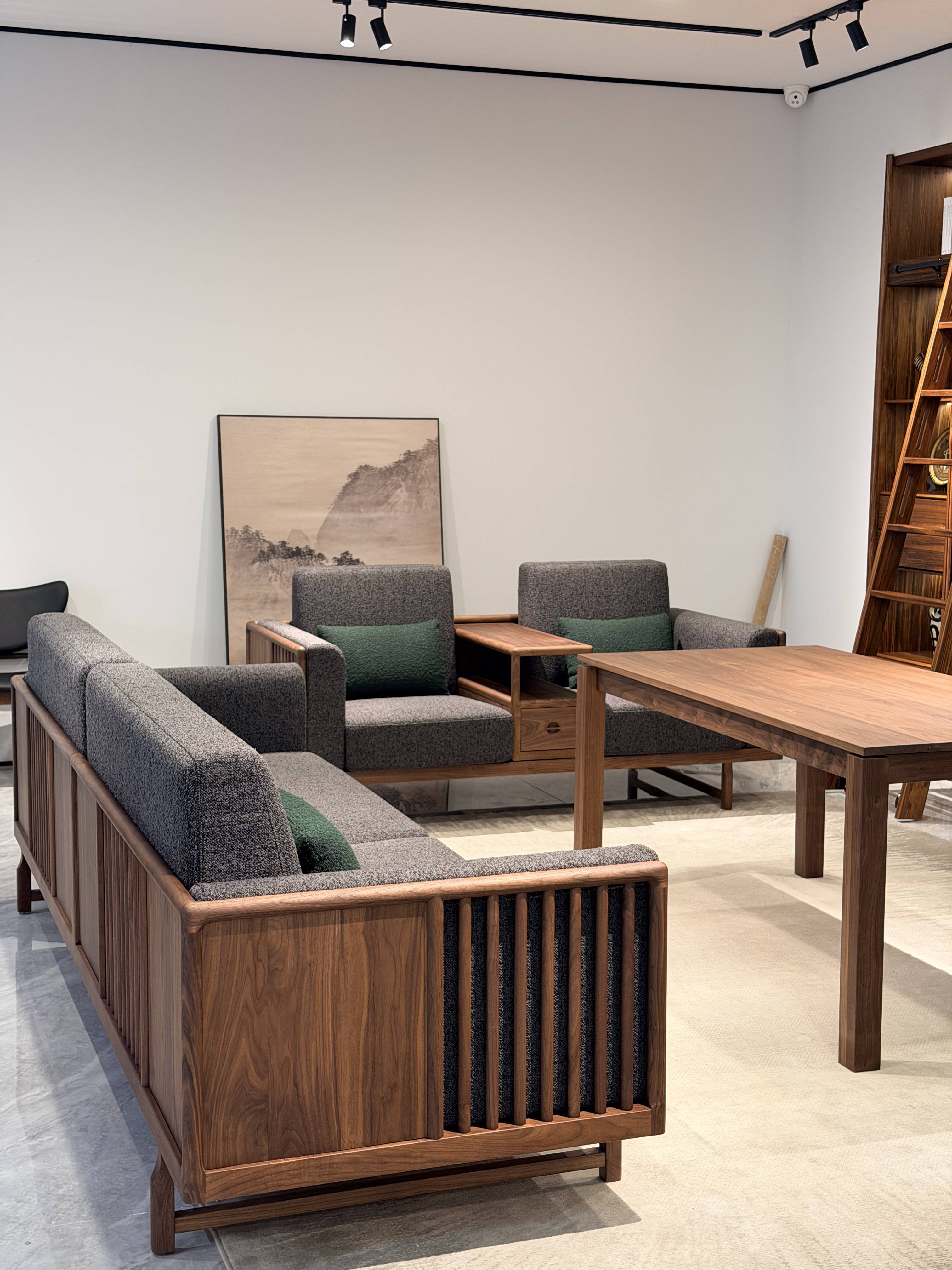 其核心业务涵盖新中式及宋式美学全品类家具的研发、生产、销售与定制服务。产品矩阵覆盖客厅、卧室、餐厅、茶室、书房等家庭全空间,包括沙发、床具、桌椅、茶桌、书桌书柜等各类家具,可实现一屋一风格,全屋无违和的统一美学效果。同时,还提供个性化定制服务,适配小户型空间优化、大平层及别墅整屋定制等多元需求。
