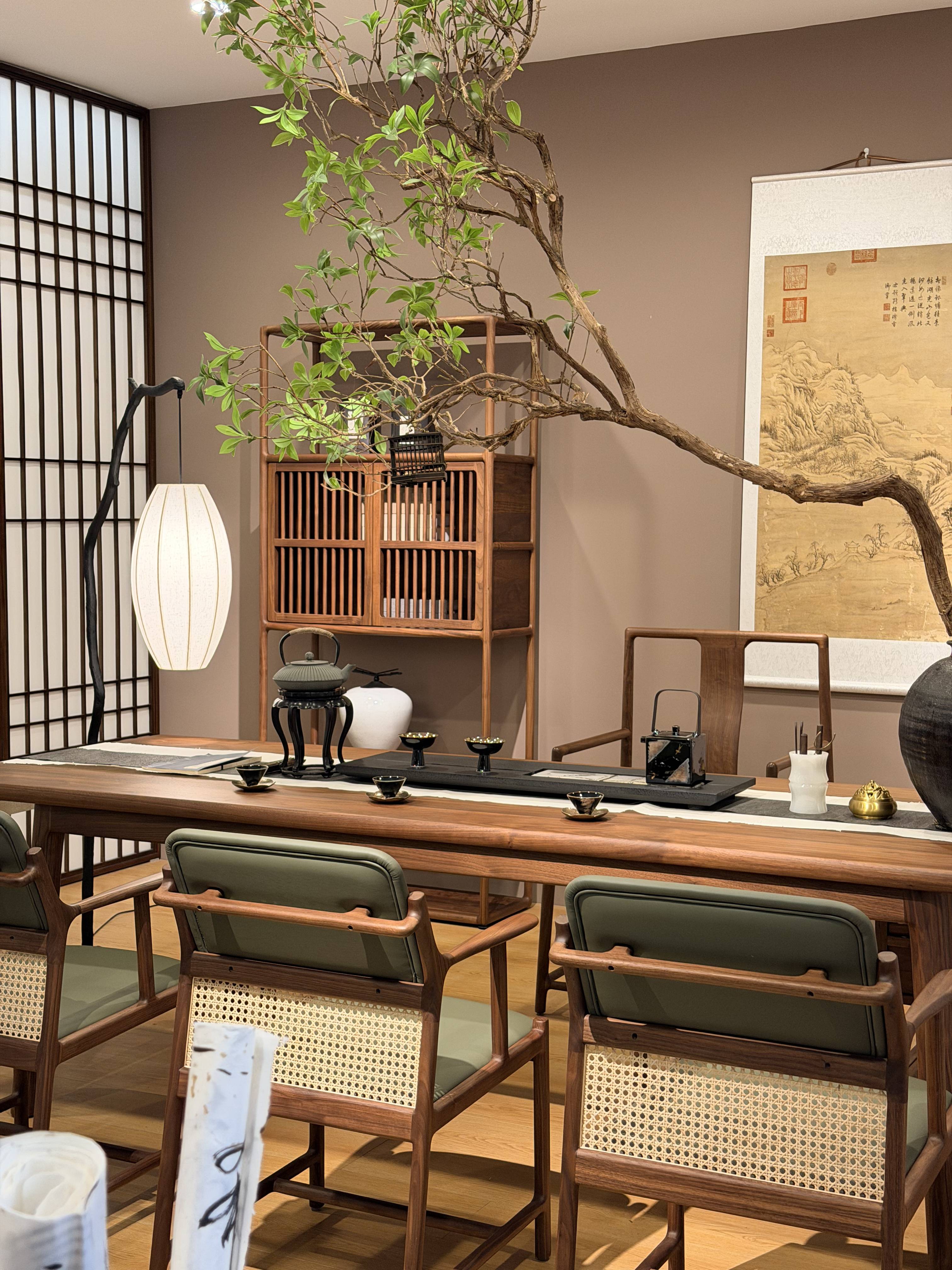 首先,我们来看看新中式家具的行业优势和特点。新中式家具摒弃了传统中式家具的繁琐厚重,更加注重实用性和舒适性。它精准提炼中式经典元素,融入现代生活场景,既保留了中式家具的韵味,又符合现代家居的审美。在材质方面,新中式家具通常选用如北美黑胡桃、乌金木、黑檀、柚木、橡木等优质木材,这些木材纹理细腻,质感上乘。同时,传承榫卯等传统工艺并搭配现代精密加工,保障了产品的质感与稳固性。在风格上,新中式家具兼具典雅与现代双重气质,以黑、白、灰、棕等沉稳色调为基础,巧妙点缀中国红等亮色;造型注重对称均衡之美,又以局部不对称设计增添灵动性,营造出宁静内敛又不失活力的东方家居氛围。