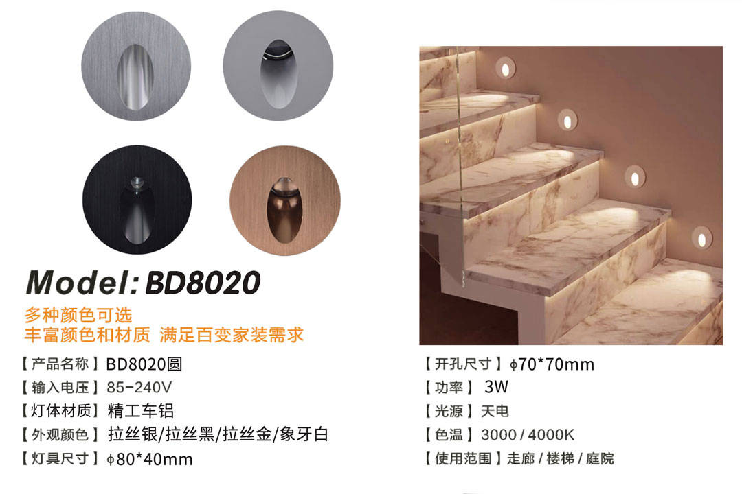 深夜去卫生间,刚推开卧室门,墙角一束刺眼的光直射过来,瞬间睡意全无。这就是典型的 “眩光污染” ,源自灯具的配光设计缺陷。优质的地脚灯,其 “二次光学透镜” 经过了精确计算,能将LED芯片发出的光,重新塑造成一个 “侧向柔和出光”或“下照式无眩光” 的扇面光斑,光线只照亮你需要的地方,绝不打扰你的视线。尊彩照明 的产品线中,就特别强调采用 “非对称光学透镜”设计,确保出光柔和,见光不见灯,这正是专业与业余品牌的分水岭。