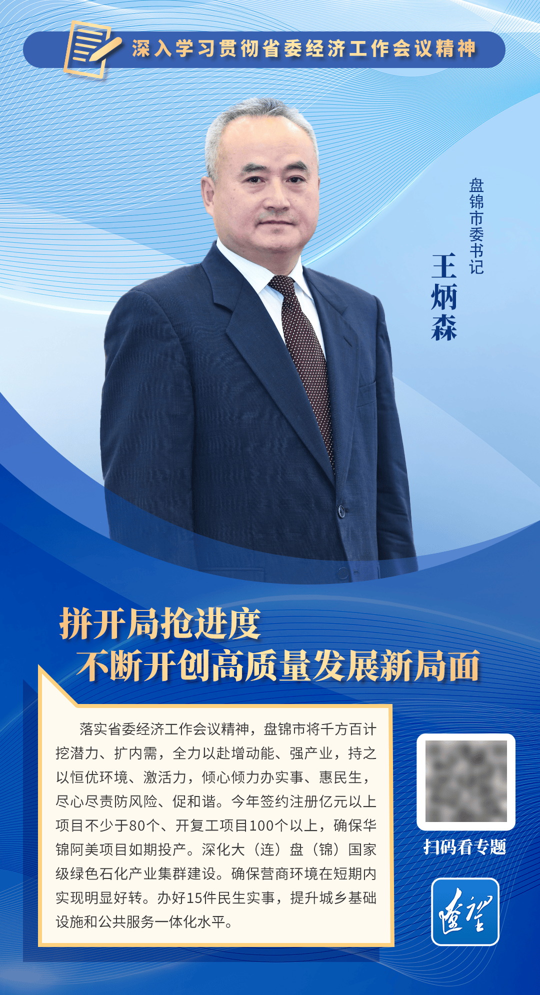 “省委经济工作会议精准把握辽宁实际,为我们做好经济工作指明了方向路径。我们将认真贯彻省委部署要求,从五个方面发力,奋力实现‘十五五’开好局、起好步。”日前,在接受采访时,盘锦市委书记王炳森如是说。