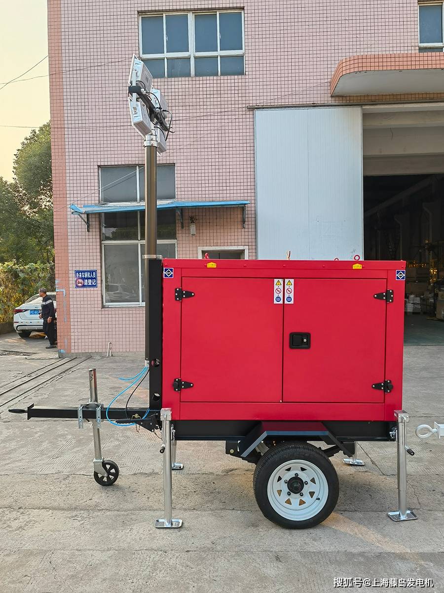 藤岛拖车式照明灯塔整体采用单轴两轮拖车式结构设计,配合标准牵引装置,可由工程车辆或皮卡快速拖行至作业现场。拖车结构紧凑,转弯灵活,便于在城市道路、施工便道及临时场地中转运。部署完成后,通过支撑装置可实现设备稳定固定,确保照明塔在运行过程中的安全性。 为适应复杂户外环境,整机配置静音防雨罩,在一定程度上降低运行噪音,同时对发动机及电气系统形成有效防护。防雨罩结构有助于减少雨水、灰尘对关键部件的影响,提升设备在露天环境下的可靠性和使用寿命。合理的通风与散热设计,保证机组在长时间运行时保持稳定状态。 在应用场景方面,该移动照明灯塔可广泛用于: • 道路与市政工程:夜间施工、养护作业照明; • 建筑工地:基坑、主体施工、临时作业区照明; • 应急抢险:防汛排涝、事故救援、灾害现场临时照明; • 工业与能源领域:设备检修、管线维护、夜间巡检; • 大型户外活动:临时照明与辅助光源支持。