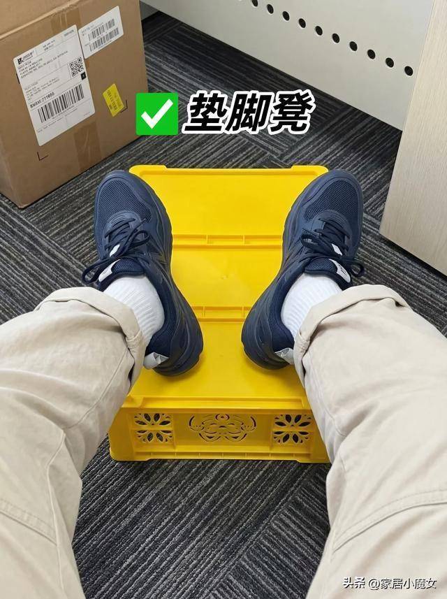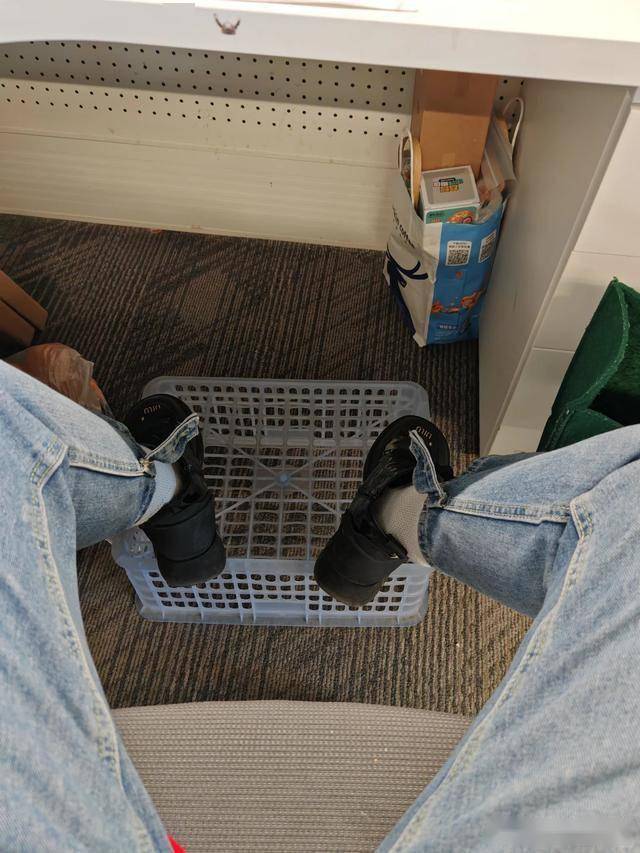 正好家里有个闲置的水果筐,高度,宽窄,硬度都非常不错,直接拿到办公室,放在桌子下面就能平替踩脚蹬了。