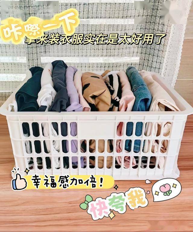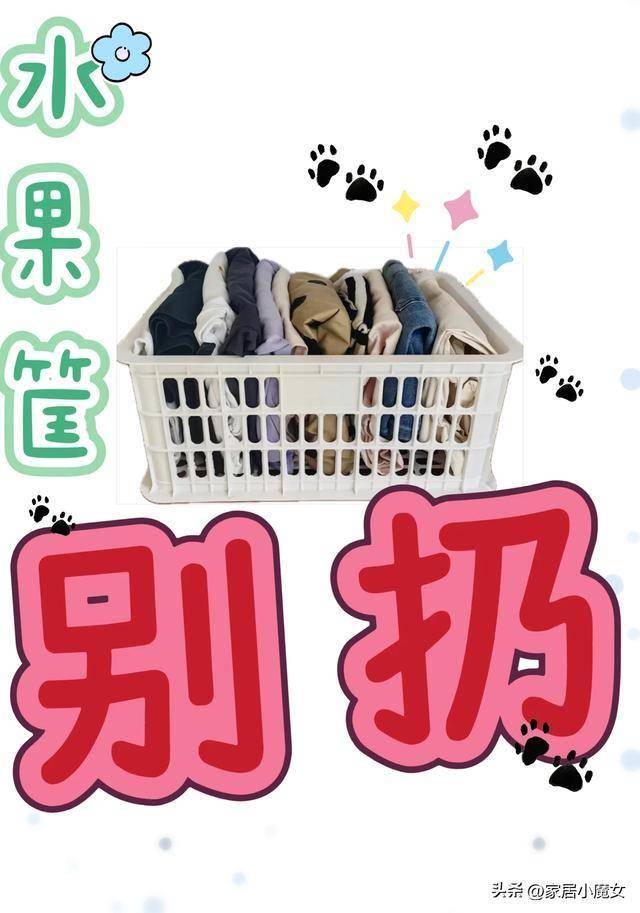 我们也只需要找一个颜色比较柔和的水果框,比如白色就可以,然后把它清洗干净,直接把衣服叠好,塞在水果筐里就可以了。