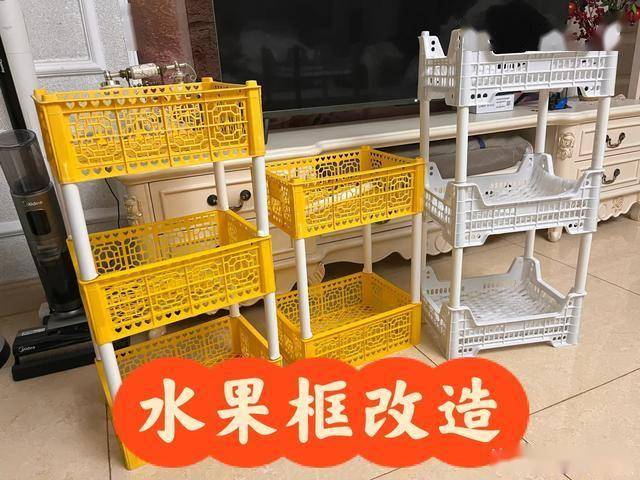 如果你有几个闲置的水果筐,还可以在网上买几根角钢,然后把它固定在水果筐4个角上就可以改造成一个水果筐置物架。