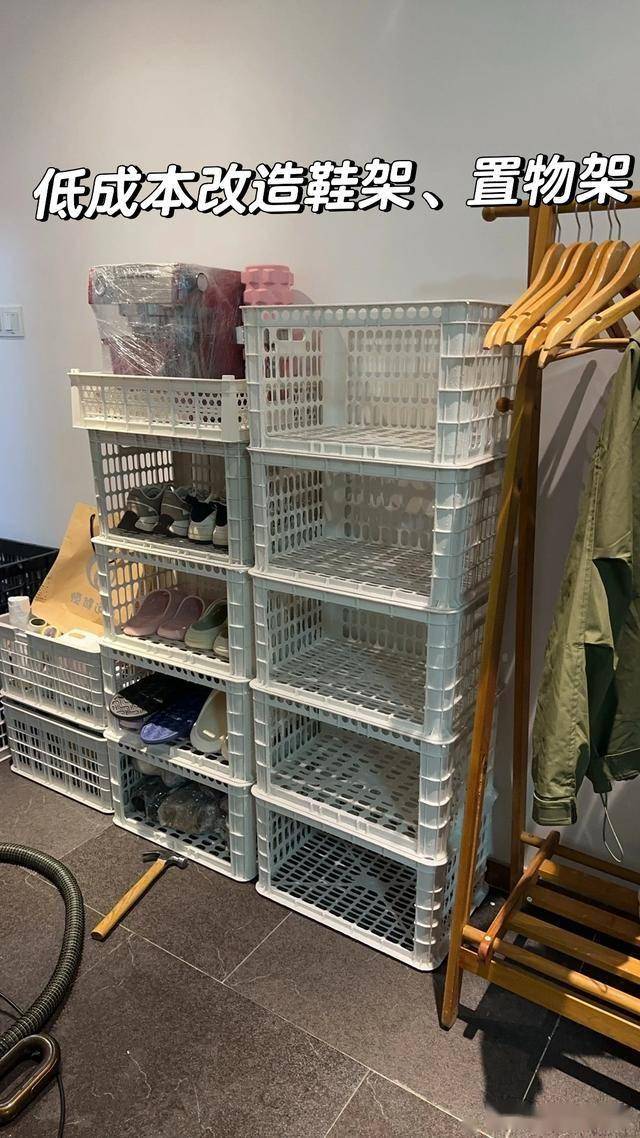 不妨用水果筐来平替一下,只要将水果筐洗干净,然后晾干就可以改造成鞋架来用了。