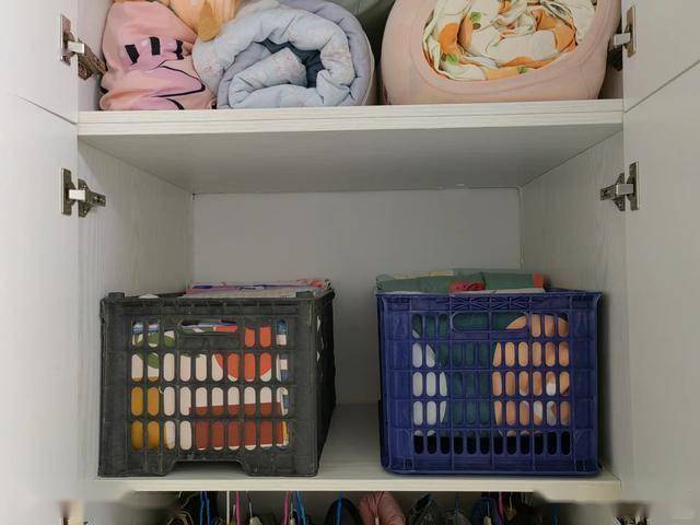 这样当翻找的时候就不容易乱了,而且看起来也很整齐,而这个收纳箱,我们就可以用水果筐来代替。