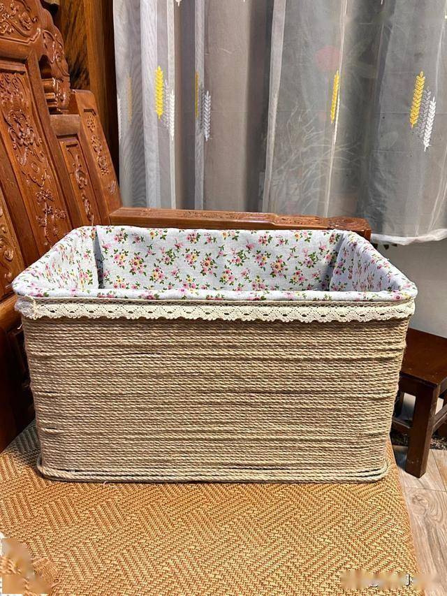 一个水果筐做的收纳盒就完成了,话说谁能看出来它是水果筐做的呢,让人不知道还以为买现成的呢,无论用来收纳衣服或者是收纳家里的杂物都非常不错。