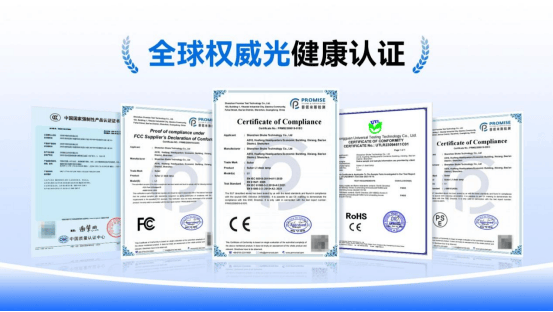 为了确保护眼台灯的安全性,在选择护眼台灯时更加要注意产品是否通过各项检测要求,列如:国标AA级要求、无可视频闪要求、防眩光。更好的高标准还有通过欧盟等多国的检测认证。