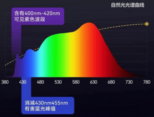 传统LED灯由于采用蓝光激发黄色荧光粉的技术,其光谱在短波蓝光部分较强,而红光、绿光等波段相对较弱,导致光谱断裂,色彩还原度下降。长时间使用这种光源,眼睛需要不断适应光谱的不均衡,容易产生疲劳。紫光激发技术能够提供更加均衡、连续的光谱,使光源更加接近自然光,提升视觉舒适度,减少因光谱不均衡导致的眼部疲劳。