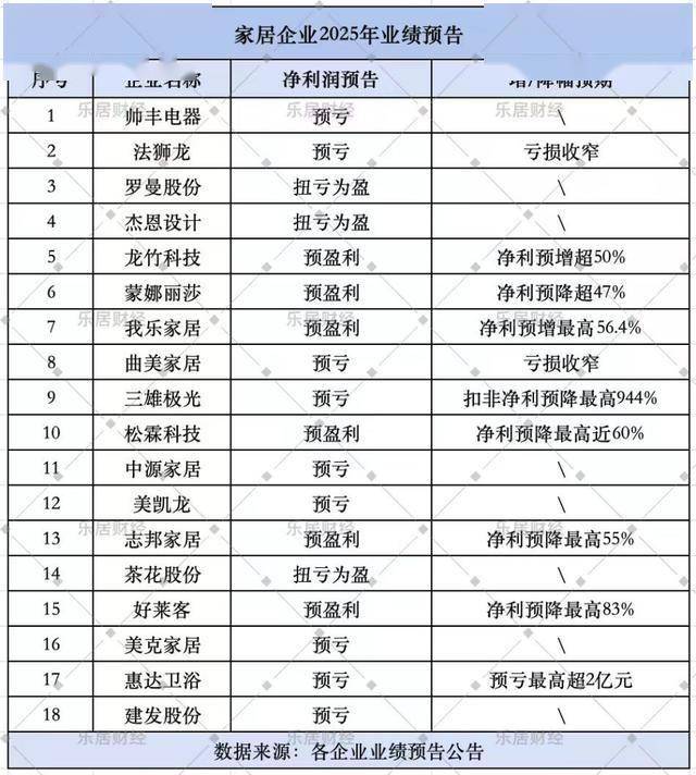 日前,距离正式发布年报还有数月,有多家家居企业已抛出自己2025年的“业绩预告”,提前给市场和投资者们,打好了“预防针”,也让观察者们从中提前摸索出2025年全年,家居行业的发展走向。