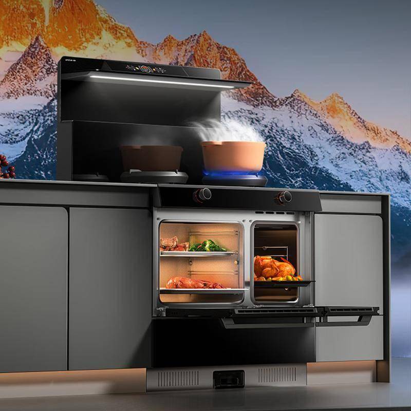 这款集蒸、烤、烹饪于一体的智能设备,采用左排天然气设计,完美适配大多数中国家庭的厨房布局。其创新的"蒸烤独立箱"结构,让您能够同时进行蒸制和烤制两种烹饪方式,大大提升了厨房工作效率。想象一下,一边蒸着海鲜,一边烤着蛋糕,还能同时在灶台上炒菜——这样的场景在传统厨房中几乎不可能实现。
