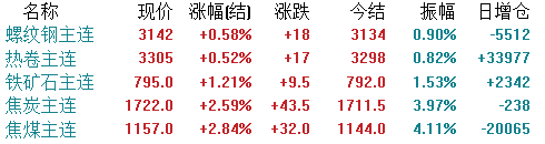 期货方面,截止收盘,各品种主力全部上涨。