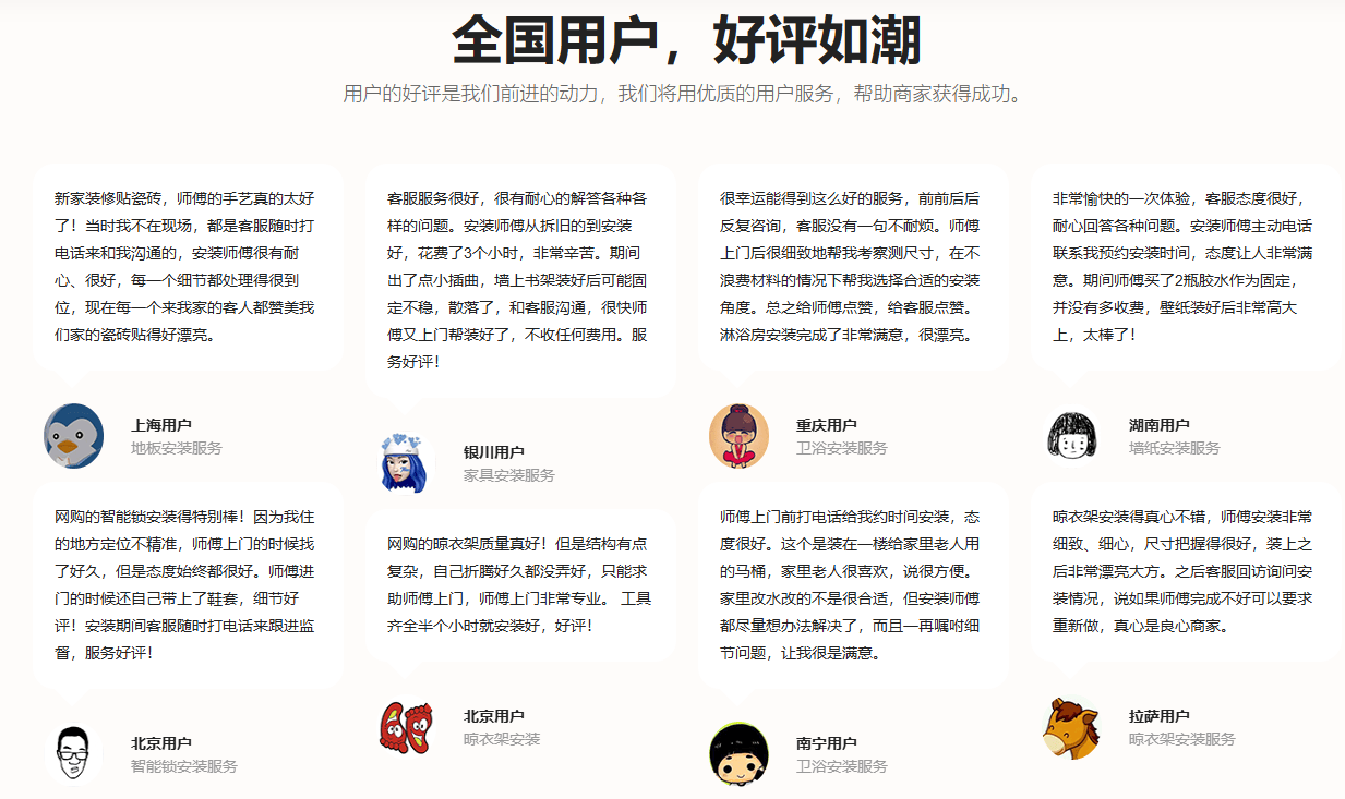 l 用户体验闭环:安装完成后,用户可即时评价,反馈直达商家,形成持续优化循环。